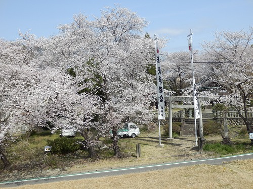 ![]() 木曽川堤防から見た神社の桜 108g027 |