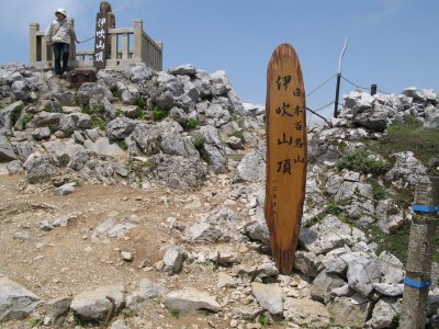 ![]() 伊吹山頂1377m標識と左上は日本武尊像 |