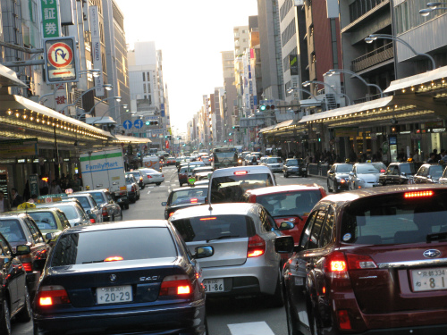 ![]() 四条河原町は歩車道とも超満員(バスから撮す)。1749 16:45 交通渋滞で青信号でもバスが動けない。 人はこの間、これら車の排ガスを吸うことになるのです。 日本の否、世界の主要都市に充満する排ガス等の空気汚染は もはや人間の生存さえ脅かしているのです。 |