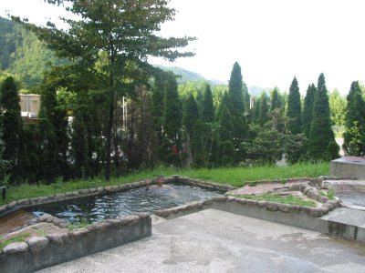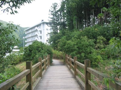 ホテルANNEXから火の谷温泉へ通じる木の橋 と 湯ing(露天風呂)