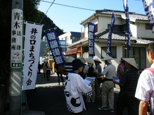 ![]() 白木町公園で休憩お茶など頂く 027 10:09 伊奈波界隈まちづくりの会の人々による接待でした。 |