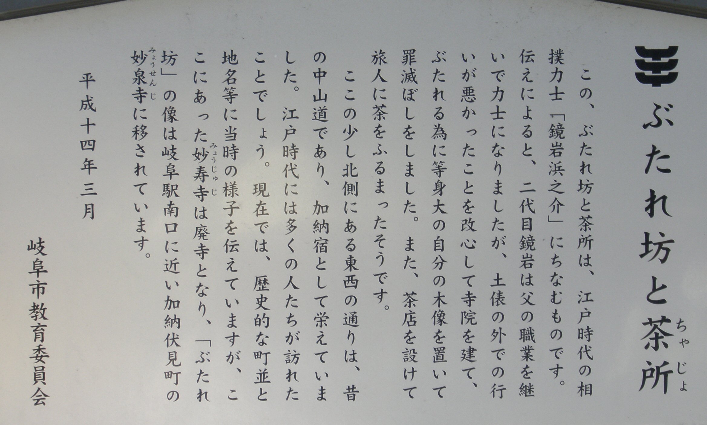 京みちの道標(笠松湊公園) Top![]() |