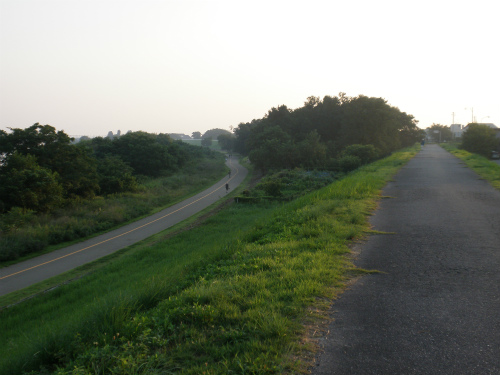 ![]() 堤防側(右)は自転車、川側は歩行者用。008 |