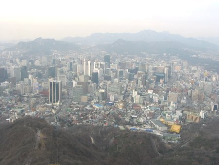 展望台からみたソウル市内(霞んで見えた)