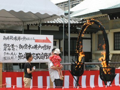 ![]() 火の輪をくぐって無病息災を祈願する |