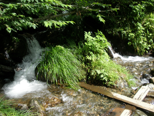 猛暑日の最中、ブナ林の登山道は木陰や山水の清流に暑気も忘れるほど心地よいものでした。