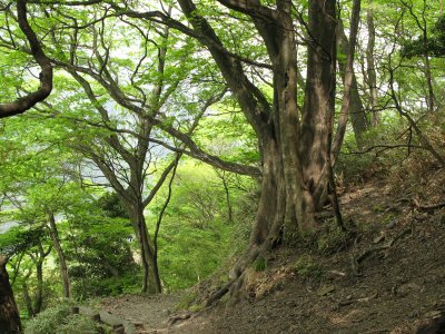 ![]() 山腹の巨木。この後急俊な山道がしばらく続く |