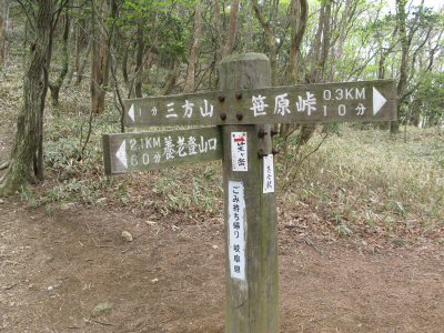 ![]() 三方山(722m)と笹原峠方面の案内標識 |